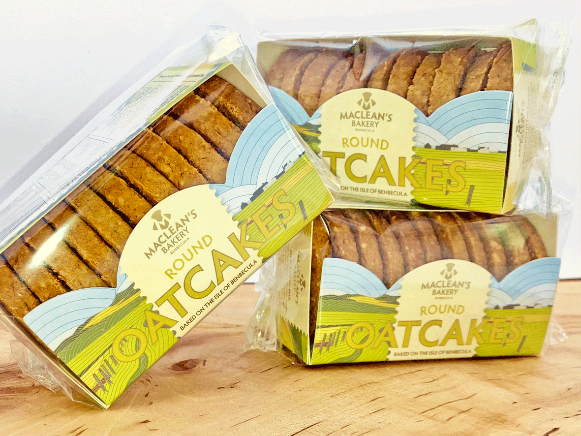 These excellent oatcakes come from our neighbouring island of Benbecula and are made by Alan Maclean and his team in their small artisan bakery.