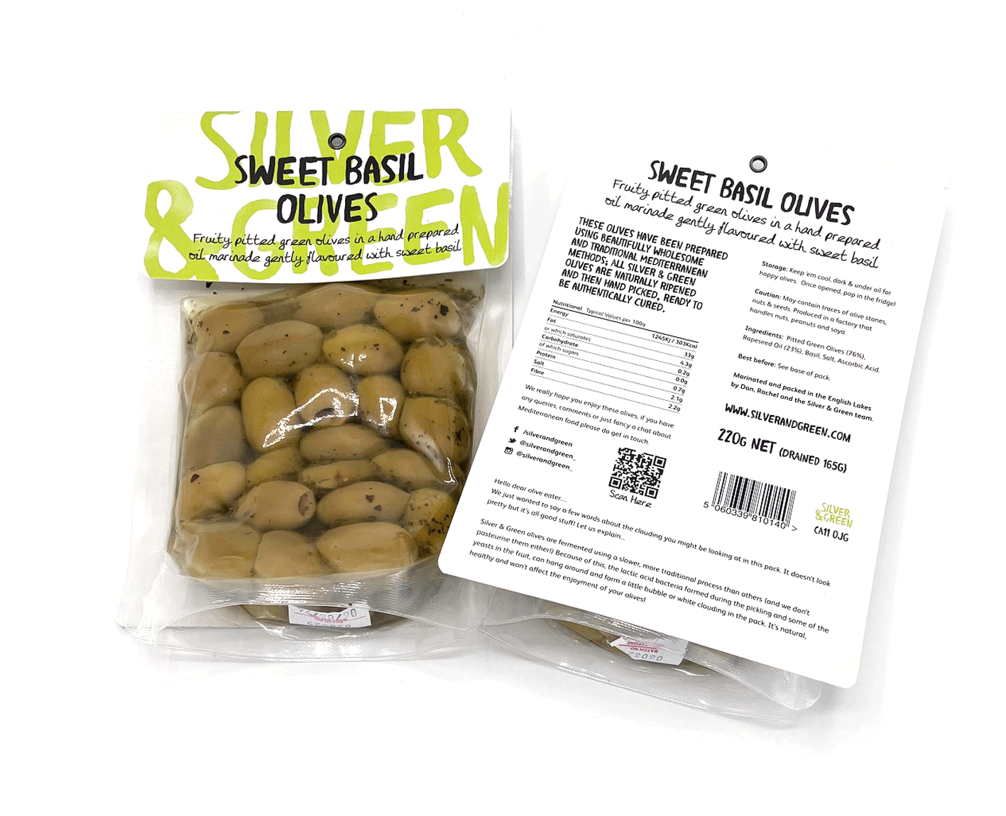 Silver and GreenSweet Basil Olives 220g